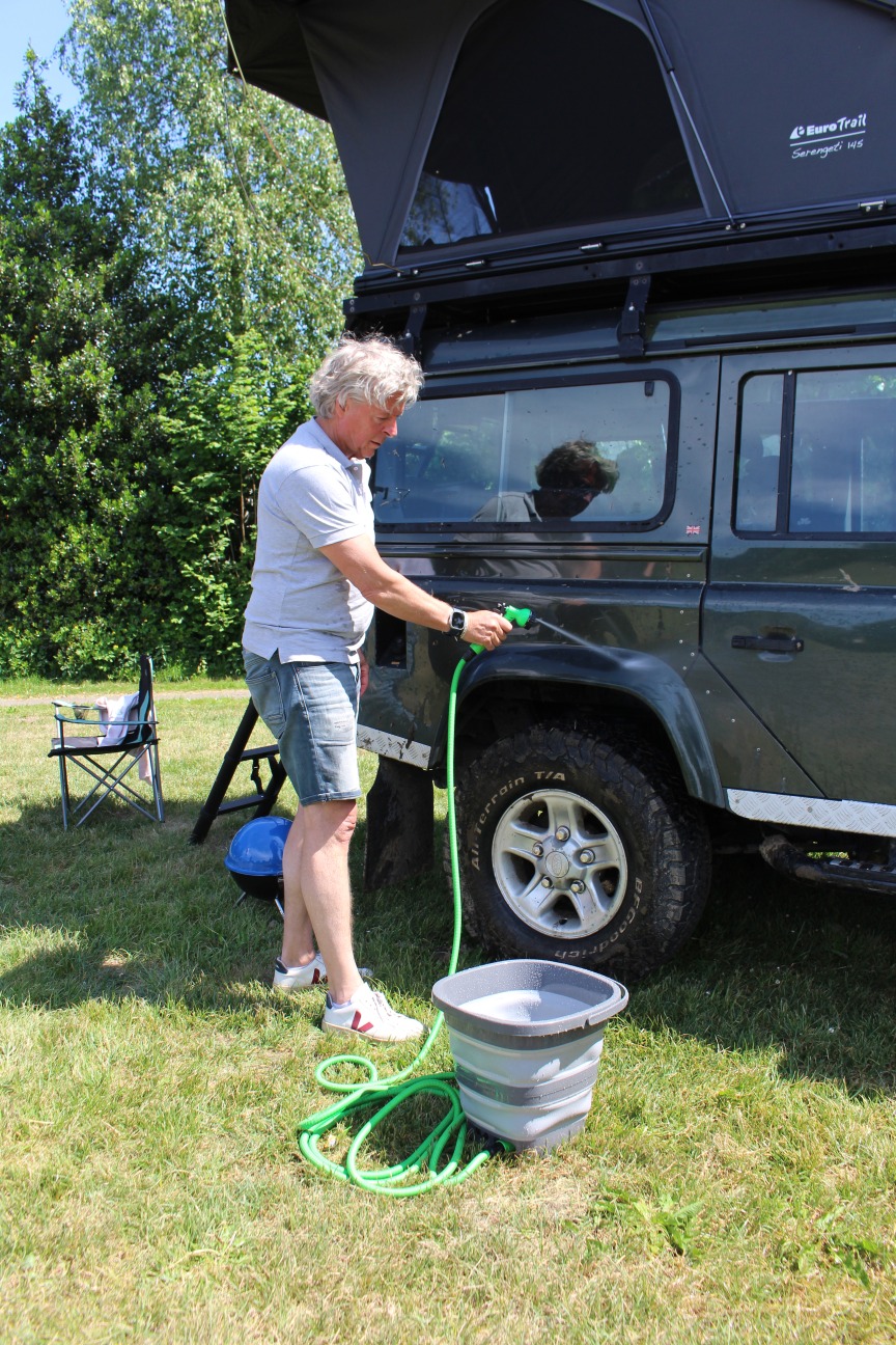 - Met deze slimme en compacte afspuitset maakt u uw auto, caravan of fiets moeiteloos schoon
